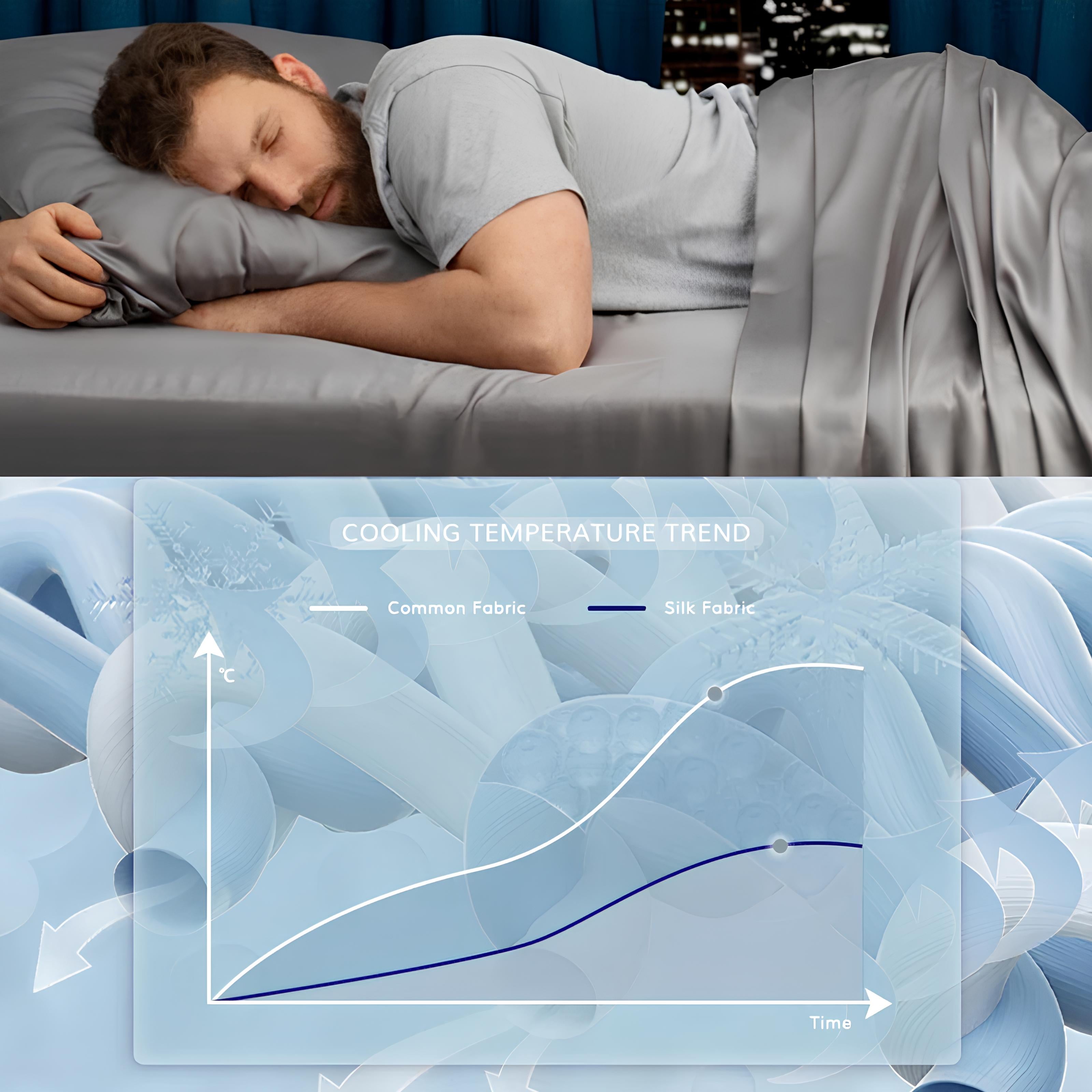 For those who sweat easily and run hot at night, silk sheets provide natural temperature control and a continuously cool sleeping experience. The high-density smooth fibers and good breathability help wick moisture quickly, reducing stuffiness and stickiness and improving overnight comfort.